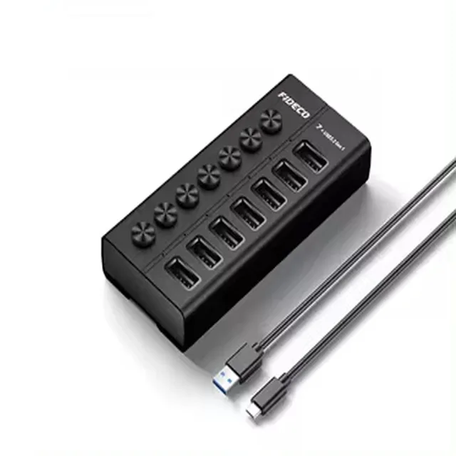 FIDECO Aluminum Multiport Powered With Individual Power Switches Usb 3.0 Hubs Splitters 7 Ports Usb C Hubs